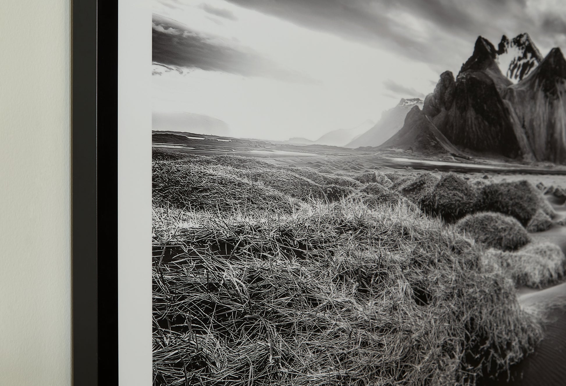 If you have your sights set on a striking landscape, this wall art is a natural wonder. Staggeringly beautiful, the framed black and white print showcases majestic mountains and a meandering stream. This moody and marvelous piece adds an air of dramatic beauty to your modern decor.